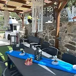 Willa oferuje miejsce do jedzenia z urządzeniem do parzenia kawy/herbaty. W kuchni znajdują się kuchenka mikrofalowa, czajnik elektryczny i lodówka. Restauracja Aegean Tavern, serwująca dania kuchni śródziemnomorskiej, znajduje się około 10 min jazdy samochodem od obiektu. Położony w odległości krótkiego spaceru od willi dworzec to Pothia zapewnia opcje transportu w pobliżu.